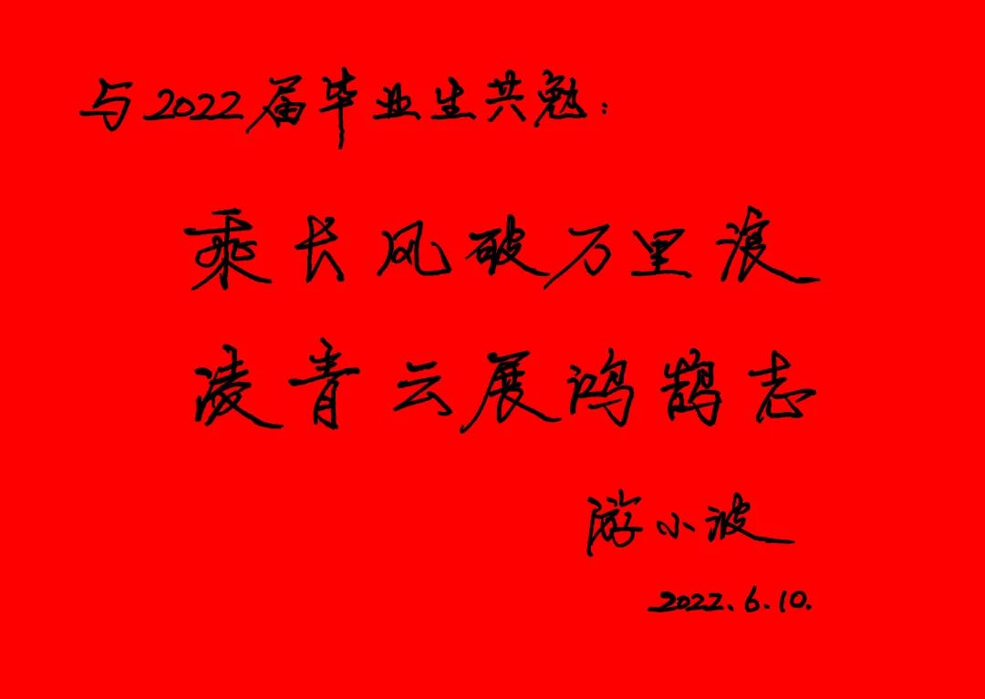 副校长、董事长助理戴景星为2022届毕业生寄语题词