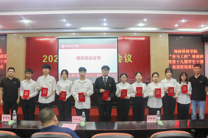 会上,校党委副书记林树生为吴佳斌等5名在培训中表现优异的同学颁发“优秀学员”,校团委书记曾荣根、副书记黄俊敏为学生代表颁发结业证书。