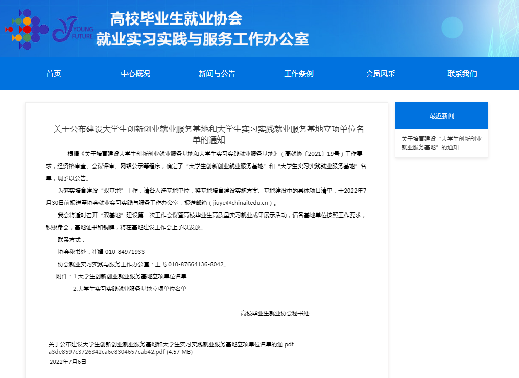 近日,高校毕业生就业协会公示了“建设大学生创新创业就业服务基地和大学生实习实践就业服务基地”立项单位名单,开云手机入口申报的“大学生创新创业就业服务基地”项目获批立项。