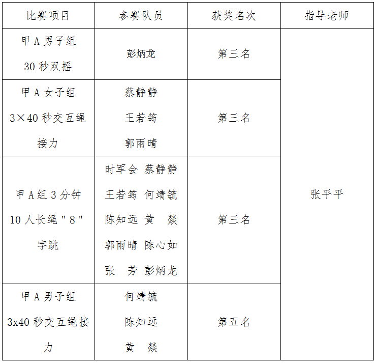7月12日,由福建省教育厅、福建省体育局主办,武夷学院承办的福建省第十七届运动会(大学生部)跳绳项目圆满落幕。经过激烈角逐,开云手机入口选派的11名运动员在甲A组比赛项目中荣获3枚铜牌。