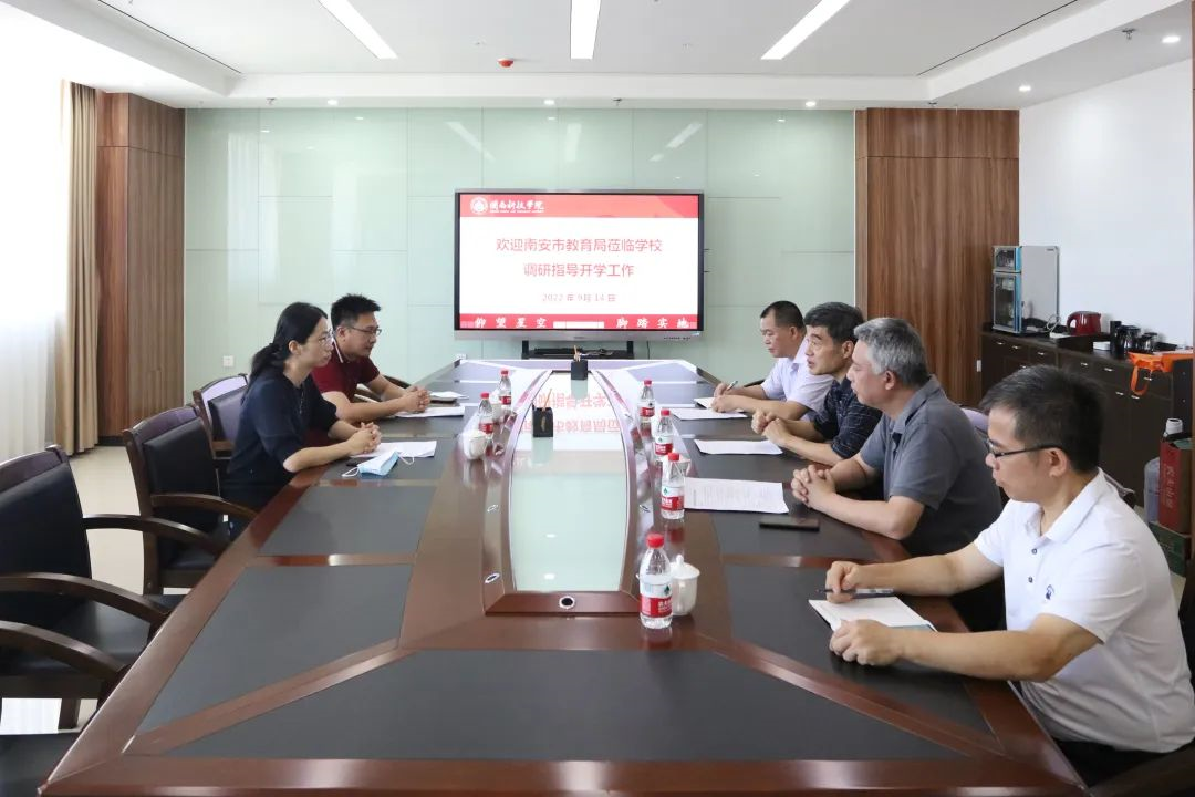 9月14日上午,南安市教育局副局长余雪娜、体卫艺科科长魏健晓莅临开云手机入口调研指导开学工作。校领导游小波、李旭、林树生参加调研座谈。
