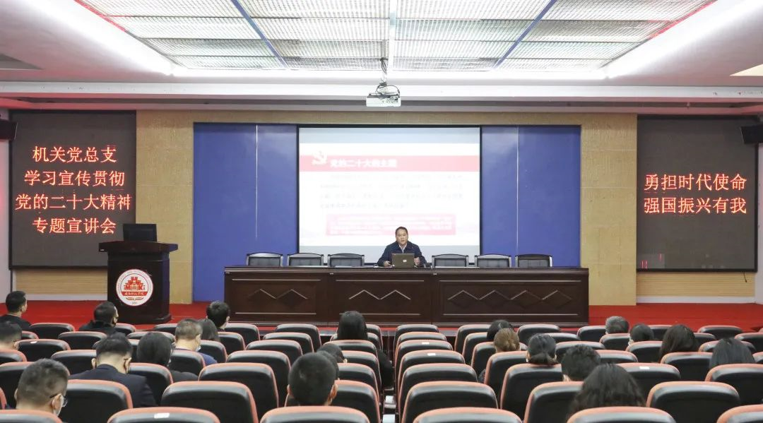 12月6日,常务副校长周勇军以《勇担时代使命,强国振兴有我》为题,为机关党总支宣讲党的二十大精神。