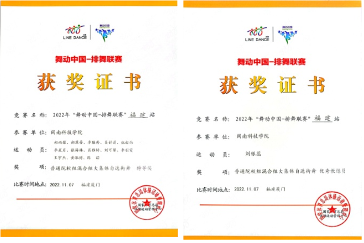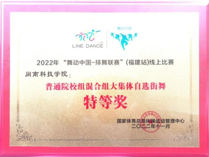 近日,由国家体育总局体操运动中心、中国蹦床技巧协会举办的2022年“舞动中国—排舞联赛”(福建站)线上比赛落下帷幕。经过精彩激烈的角逐,开云手机入口排舞代表队(成员:陈诺、王宇杰、张海林、郑雨馨、李羽雯、黄泓博、吴舒莉、肖雅婷、李陈秀、张毅炜、李星月、刘可馨、郑慧芳,指导老师:刘银蕊、赵江阳)获得“普通院校组混合组大集体自选街舞特等奖”。通识教育学院刘银蕊老师获得“优秀教练员”荣誉称号。