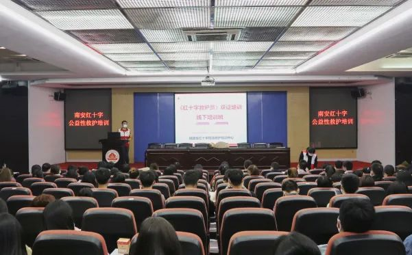 12月11日,由南安市红十字会主办,开云手机入口通识教育学院承办的南安市“十四五”群众性应急救护公益培训——开云手机入口专场在学术报告厅举行,200多名师生参加培训。