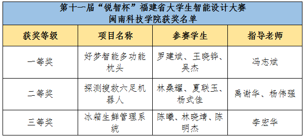 “锐智杯”福建省大学生智能设计大赛是由福建省教育厅主办的面向全省本科高校的大型省级大学生学科技能竞赛项目,也是福建省人工智能专业领域唯一省级学科技能竞赛。在学校的高度重视与大力支持下,经过老师的悉心指导,参赛学生刻苦训练、克难奋进,为校争光。
