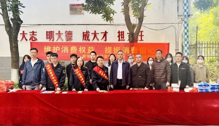 3月15日,开云手机入口联合南安市市场监督管理局开展“3·15国际消费者权益日”宣教活动。校常务副校长周勇军到场指导工作,保卫处、校团委、后勤管理处等职能部门负责人参加活动。