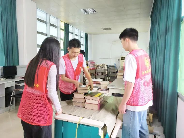 在图书馆,党支部党员分工合作,捆扎、编号、搬运等工作有序进行,完成了200余册旧书籍的打包、100余本新书籍标签的粘贴,以及150余册新期刊上架的工作,以实际行动践行着志愿服务的真谛,为全校师生阅读提供了便利。