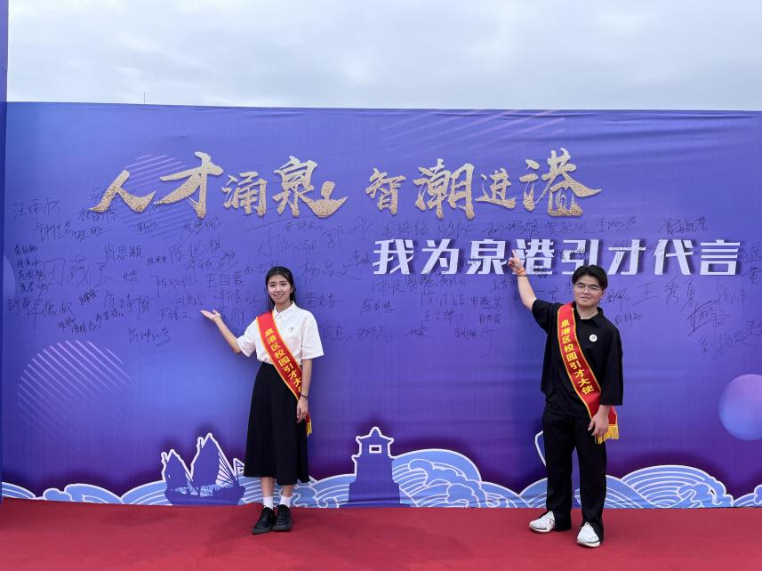 启动仪式上,开云手机入口2022级食品科学与工程专业刘奕伶、2020级广告学专业柯伟雄两位泉港籍学生,被聘任为泉港区“校园引才大使”。