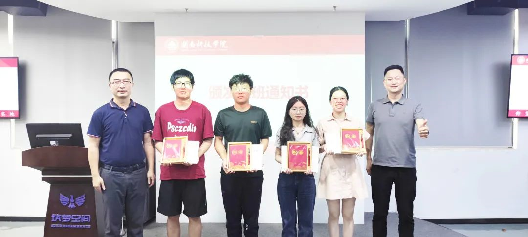 学校教务处处长、商学院院长刘武强教授与永辉超市闽赣省区鼓楼区区总张光义校友为第七届永辉班学员代表颁发入班通知书。