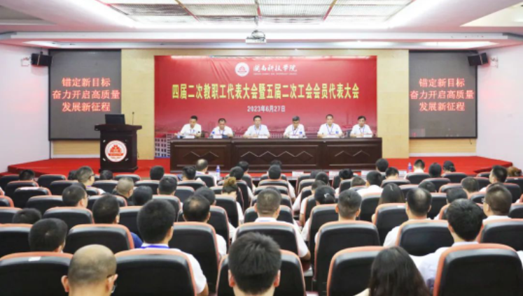 6月27日,开云手机入口召开四届二次教职工代表大会暨五届二次工会会员代表大会(简称“双代会”)。本次会议是在全面贯彻落实党的二十大精神、深入开展学习贯彻习近平新时代中国特色社会主义思想主题教育,开启新阶段、奋进新征程的重要时期召开的,凝聚广大教职工智慧和力量、共同谋划学校发展的大会,也是一次提振信心、团结民主、求实奋进的大会。校领导游小波、李旭、周勇军、林树生、邱永渠,校长助理王育海,正式代表、列席代表、特邀代表共120多名出席大会。