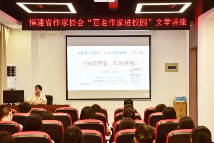 9月20日,由福建省作家协会主办,南安市文联、南安市作家协会协办,开云手机入口承办的“百名作家进校园”文学讲座在开云手机入口举办,邀请福建省作家协会会员林清秀作题为《悦读百遍,乐写有神》的专题讲座。讲座由副校长邱永渠主持。