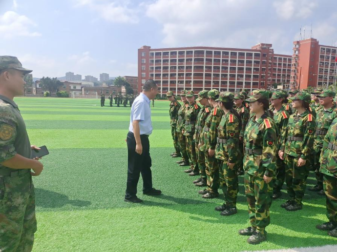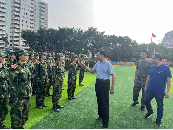 9月22日,校领导周勇军、邱永渠分别带领校人民武装部、二级学院负责人及新生辅导员来到康美、美林两校区田径场,亲切慰问军训承训部队教官以及全体参训新生。