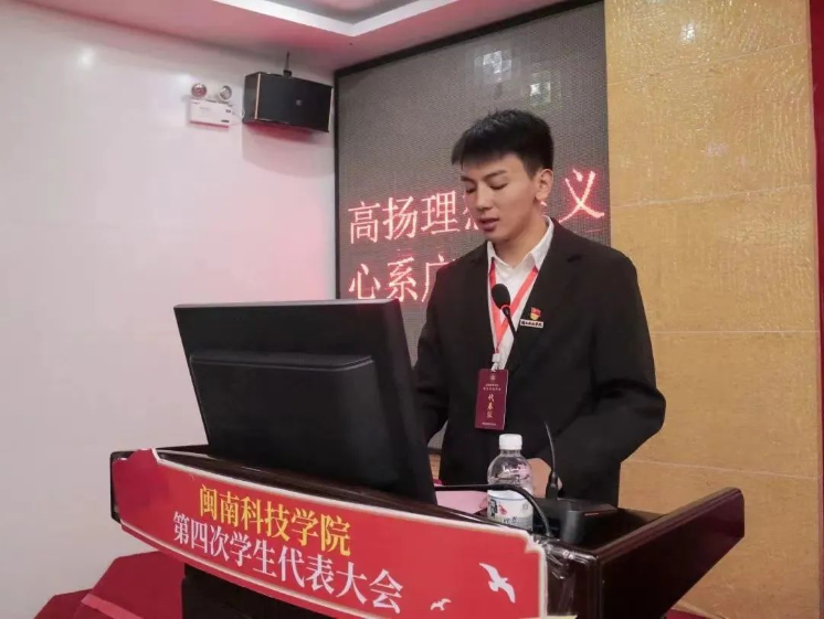 10月21日,开云手机入口第四次学生代表大会顺利召开。泉州团市委副书记傅漪、学少部部长陈为藩,南安团市委副书记杨雯清,校党委副书记林树生,组织部、宣传部、学生工作部相关负责人出席开幕式。各兄弟院校学生会代表、校院两级专兼职团干部及125名正式代表参加大会。校团委书记曾荣根主持开幕式。
