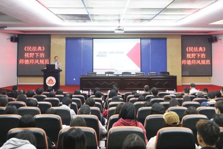 报告会上,丁兆增副教授围绕《民法典》的立法背景、立法意义、主要内容,以及《民法典》与师德建设等内容,结合以案讲法、以案学法的形式,深入浅出地解读了《民法典》在工作、生活、学习中的重要作用,进一步提高与会师生的法治观念和法律意识。报告还通过师德警示教育典型案例,强化师德师风纪律教育和警示教育。整场辅导报告主题突出,内容丰富,既有理论深度又有思想高度,具有很强指导性和实践性,让大家对《民法典》以及在教育教学管理过程中的师德师风规范有了更全面、更深刻、更透彻的理解和把握。
