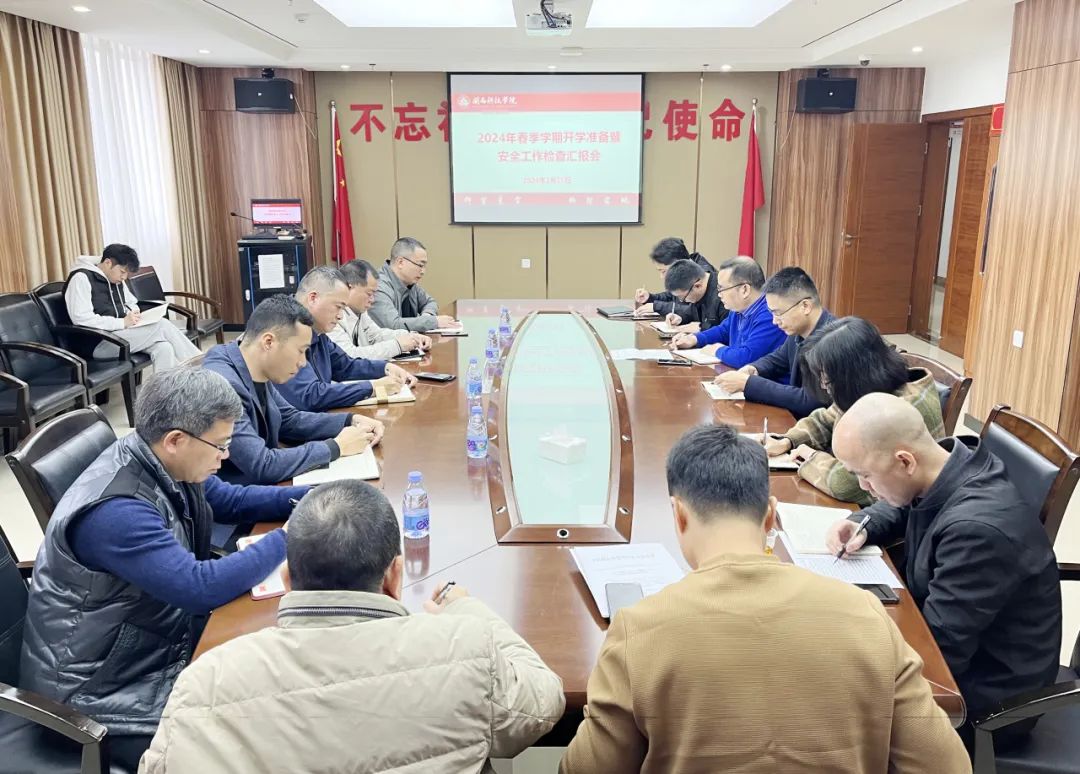 2月25日,开云手机入口召开2024年春季学期开学准备暨安全工作检查汇报会。校领导周勇军、林树生,校长助理王育海、刘武强,相关职能部门负责人参加会议。会议由常务副校长周勇军主持。