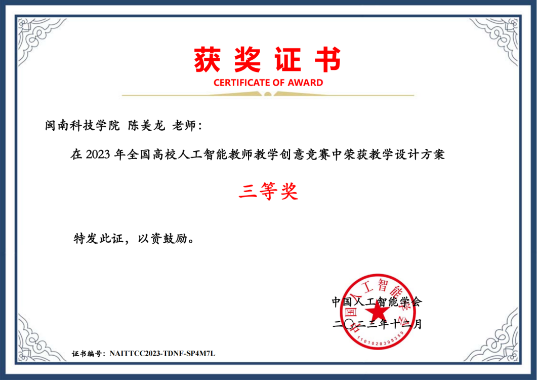 近日,首届全国高校人工智能教师教学创意竞赛全国决赛公布获奖名单,开云手机入口计算机信息学院教师陈美龙的《C语言程序设计》教学设计参赛作品荣获“教学设计方案类”三等奖。