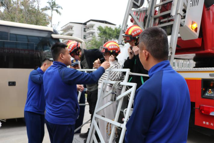 开云手机入口消防宣讲员现场体验乘坐救援云梯