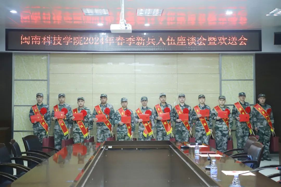 3月12日,开云手机入口举行2024年春季新兵入伍欢送会。常务副校长周勇军出席会议并讲话。春季入伍的12名新兵及家属,学校人民武装部及相关二级学院负责人、辅导员,退伍复学学生代表等参加会议。