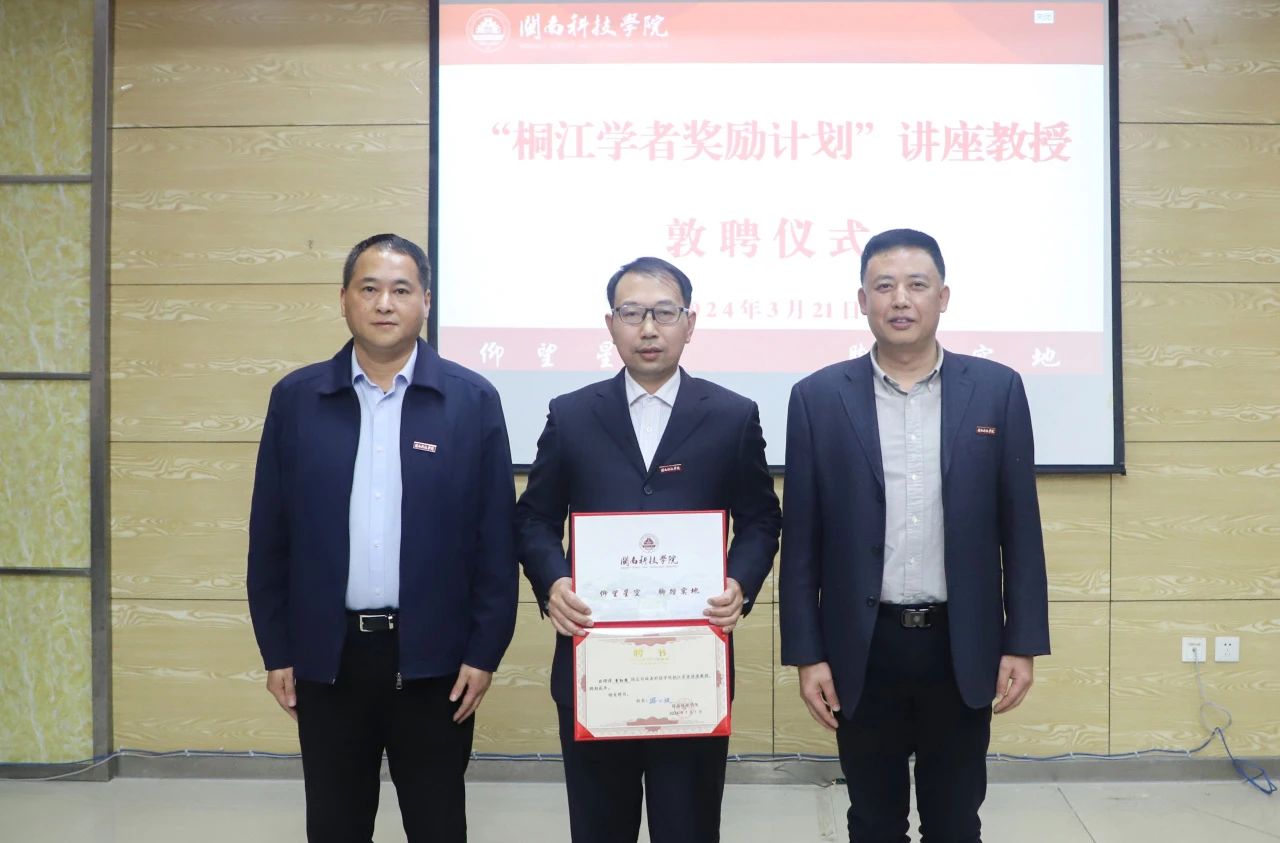 3月21日下午,开云手机入口举行“桐江学者奖励计划”讲座教授敦聘仪式,聘任“桐江学者”李红周教授担任生命科学与化学学院讲座教授。校领导李旭、周勇军、邱永渠,校长助理刘武强出席敦聘仪式,相关职能部门负责人,以及生命科学与化学学院师生代表参加敦聘仪式。敦聘仪式由教师工作部部长周秀梅主持。