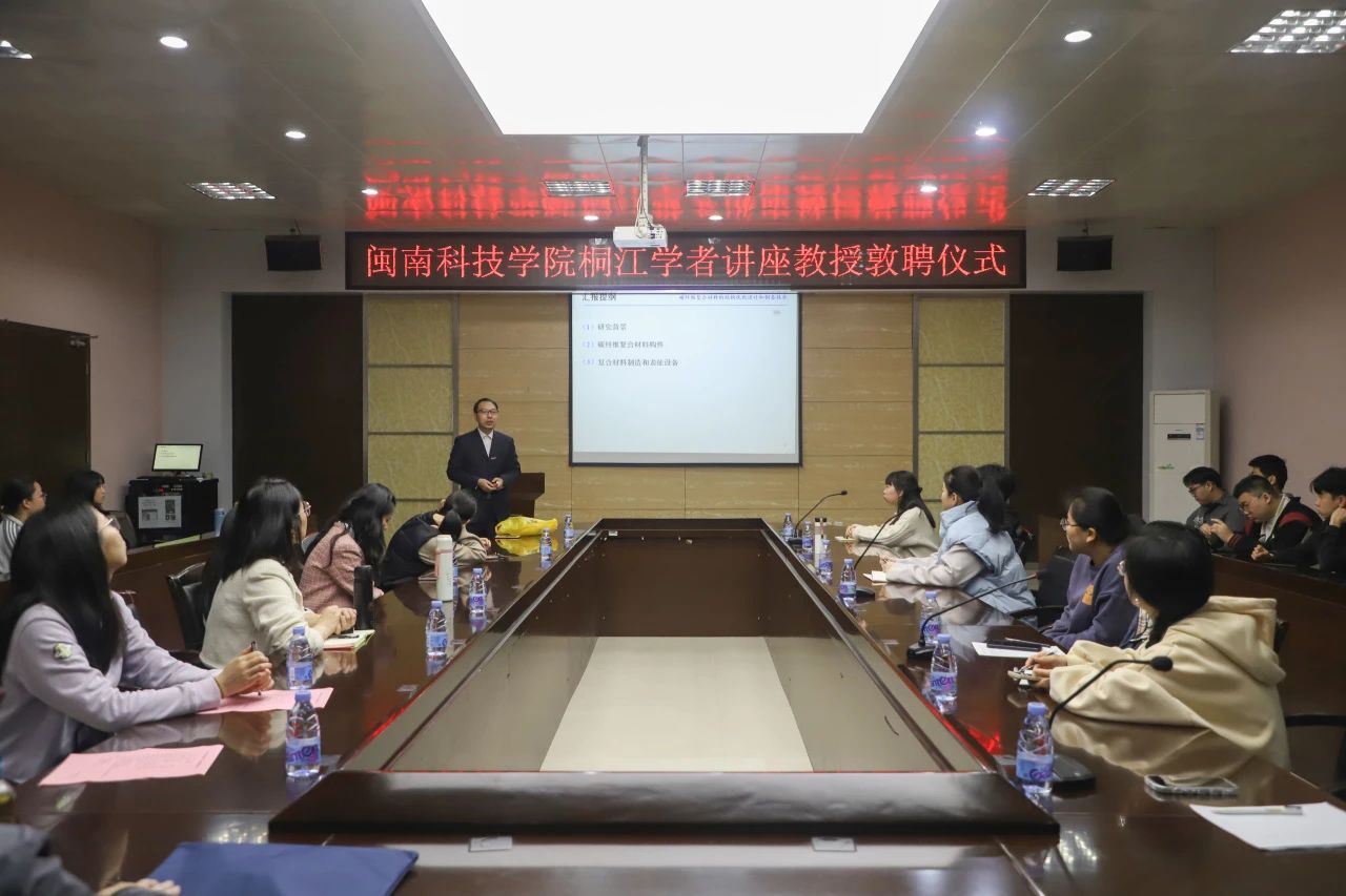 副校长邱永渠宣读泉州市教育局《关于公布泉州市第十二批“桐江学者奖励计划”特聘教授和讲座教授入选名单的通知》。