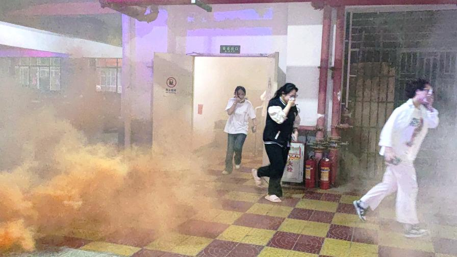 演练现场,参演学生用湿毛巾捂住口鼻、低头弯腰,按照指定疏散路线有序从宿舍楼撤离到安全区域,南安市消防救援大队根据现场火情迅速开展指挥、灭火、搜救等火场救援工作,医疗救护组为“受伤”学生进行现场医疗救治。整场演练紧张有序,按既定预案,各参演人员分工明确、配合默契、行动迅速,灭火处置程序科学严密,达到预期演练效果。
