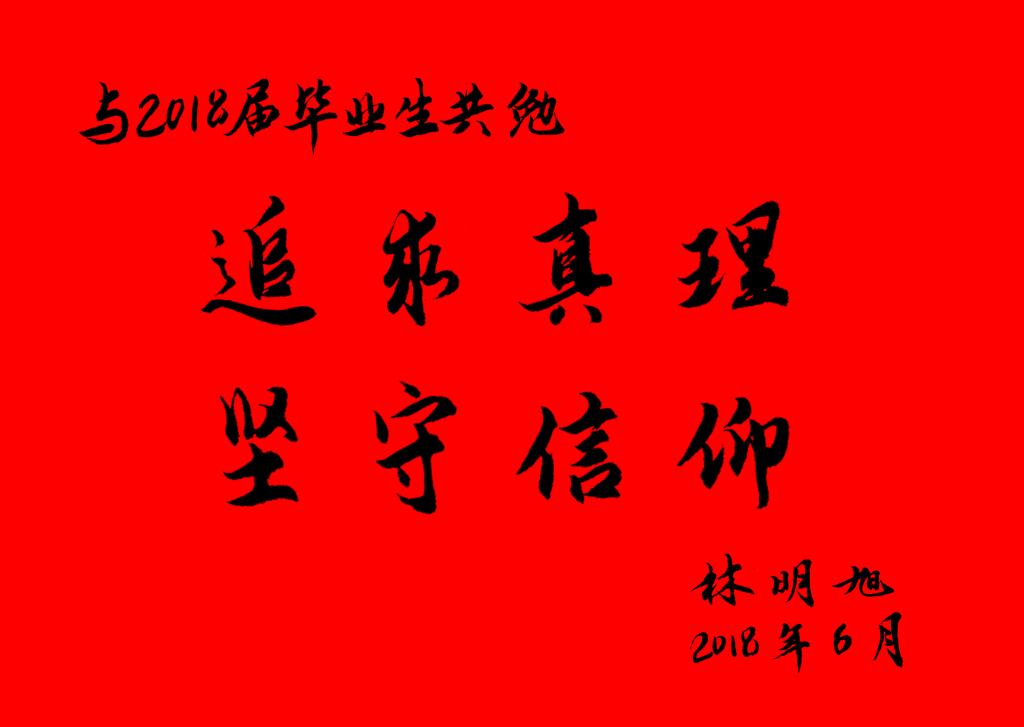 党委常务副书记林明旭为2018届毕业生寄语题词