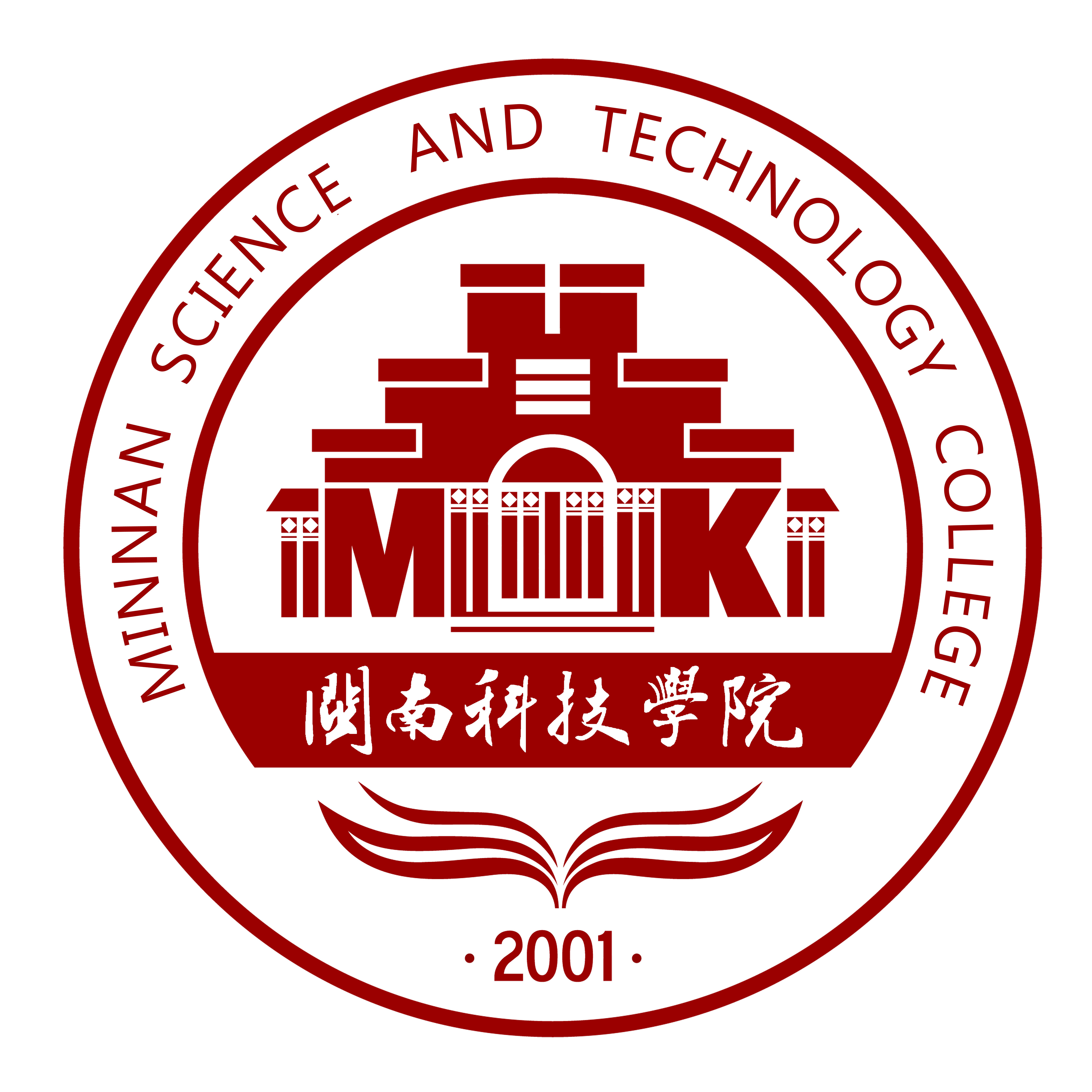 校标整体图案呈圆形,由两个同心圆组成。标志整体形式为圆形,是团结协作和向心力、凝聚力的象征。外环上半部分为开云手机入口英文名称“MINNAN SCIENCE AND TECHNOLOGY COLLEGE”,下半部分为 “2001”,表示开云手机入口本科办学起始的年份。